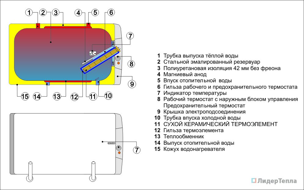 - ₽Комбинированные горизонтальные водонагреватели Drazice OKCV 160 предназначены для нагрева воды ГВС и монтируются на стену в горизонтальном положении. Нагрев воды осуществляется теплообменником или керамическим нагревательным элементом (ТЭНом). Теплообменник рассчитан на максимальную температуру отопительной воды 110°C и давление 0,4 MPa. Нагрев воды производится с помощью двухконтурного теплообменника дублирующим контуром горячей воды. Сначала теплообменник нагревает воду в верхней части резервуара, а затем нижние слои. ЭлектроТЭН имеет мощность 2,0-2,2 кВт и при необходимости может быть заменен на более мощный (для OKCV 180 и OKCV 200). В комплект поставки входит предохранительный клапан. Коэффициент электрической безопасности - IP45.