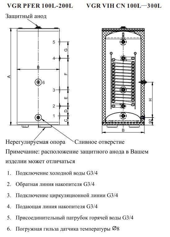Расположение патрубков подключения