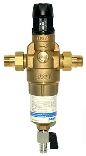 Фильтр BWT Protector mini H/R 3/4" HWS с редуктором давления горячей воды 100 мкм (810563)