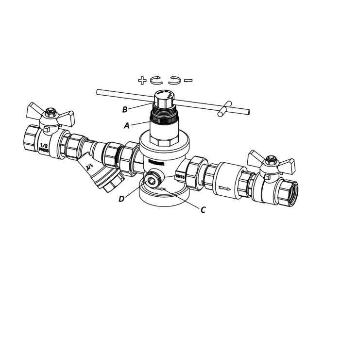 Редуктор давления Rommer 1" PN25 с выходом под манометр, внутренняя резьба (RVS-0008-000025)
