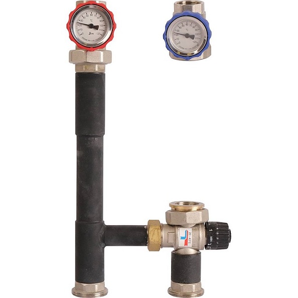 • Термостатический смесительный клапан в линии подачи с накидной гайкой (1 ½) для установки насоса
