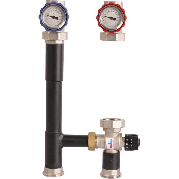 • Насосная группа с термостатическим смесительным клапаном 1˝ без насоса представляет собой готовый комплект арматуры и предназначена для присоединения контура теплого пола, бойлера, радиаторного отопления с автоматической регулировкой заданной температуры теплоносителя с помощью термостатического смесительного клапана, установленного в подающей линии.