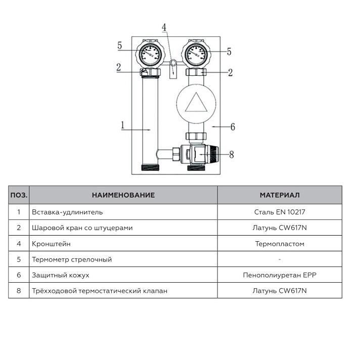 <p>Насосные группы являются элементами гидромодуля быстрого монтажа полной заводской готовности. Предназначены для обеспечения требуемого температурного и гидравлического режимов в системах теплопотребления здания. Насосная группа быстрого монтажа с трёхходовым термостатическим клапаном предназначена для обеспечения принудительной циркуляции и поддержания постоянной температуры теплоносителя в системе отопления, например, в системе типа «теплый пол». </p> <p><strong>В базовый комплект поставки входят:</strong></p> <ul> <li>☑ Насосная группа с кожухом – 1 шт;</li> <li>☑ Набор крепежа – 1 комплект;</li> <li>☑ Коробка упаковочная – 1 шт;</li> <li>☑ Технический паспорт с гарантийным талоном – 1 шт.</li> </ul>