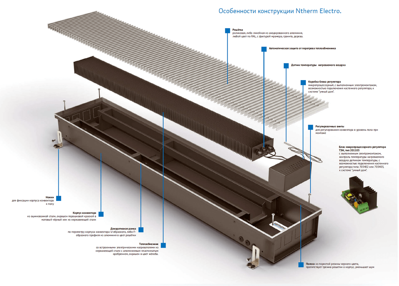 Встраиваемый в пол конвектор Varmann Ntherm Electro 370x110x2250 мм (NE 370.110.2250 RR U EV1)