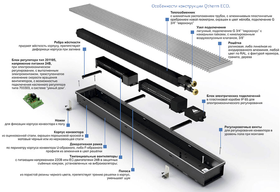 Встраиваемый в пол конвектор Varmann Qtherm Eco 280x90x1600 мм (QECO 280.90.1600 RR U EV1)