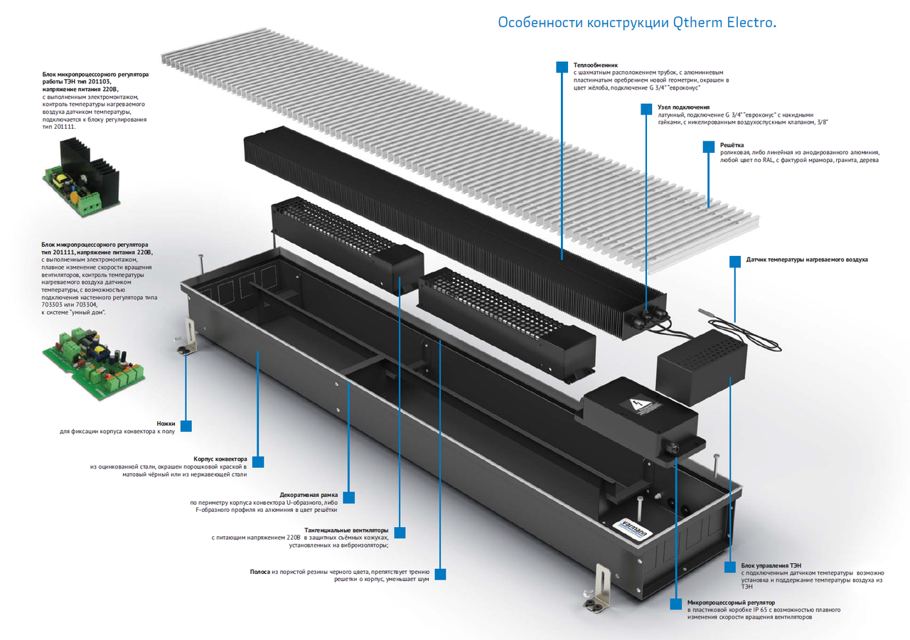 Встраиваемый в пол конвектор Varmann Qtherm Electro 180x110x1250 мм (QE 180.110.1250 RR U EV1)