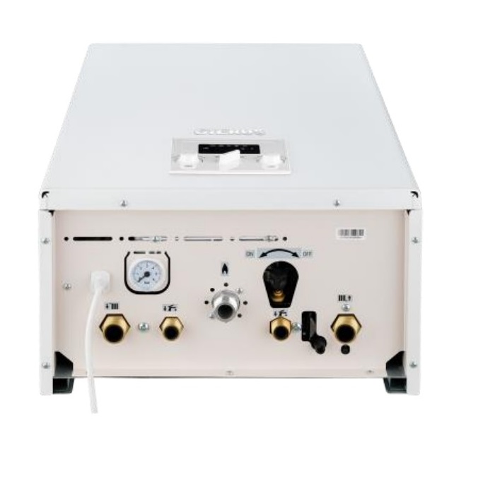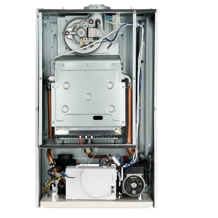 Патрубки подключения отопления, ГВС и газоснабжения расположены по «европейской» схеме.