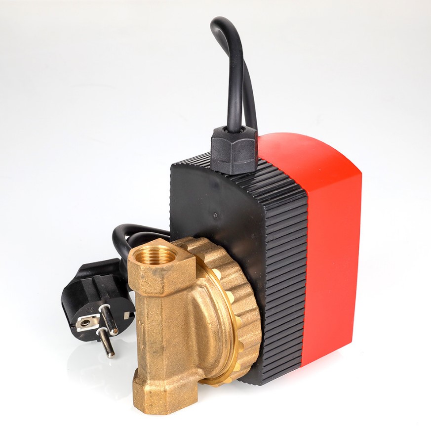 Напряжение питание насоса – 220 В (50 Гц), максимальное статическое давление – 10 бар, интервал температур воды 0–95 °C, присоединительная резьба – внутренняя, 1/2″.
