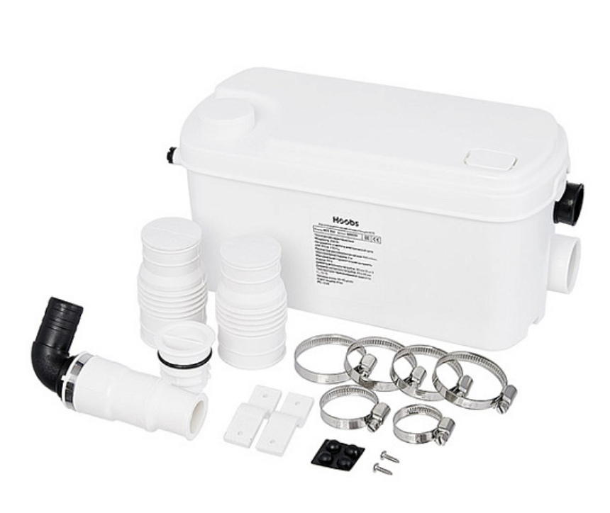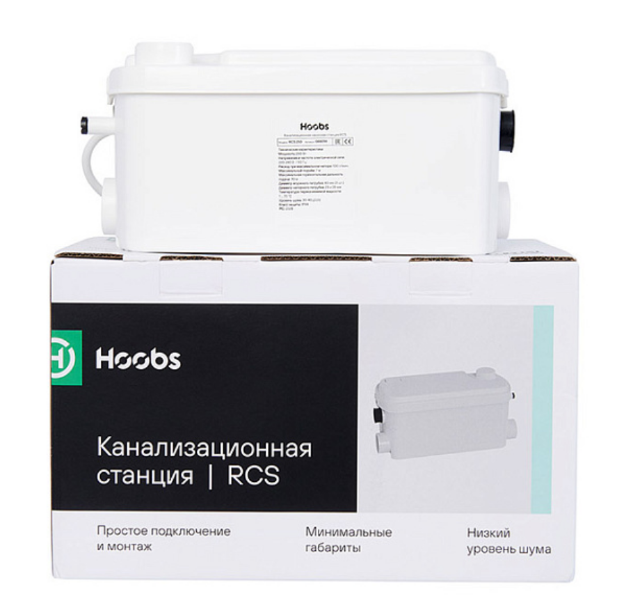 Насосная канализационная установка Hoobs RCS 250 поставляется в комплекте с: обратным клапаном – 1 шт.; заглушками входа – 2 шт.; переходником – 1 шт.; хомутами металлическими – 3 шт.; креплениями к полу – 2 шт.
