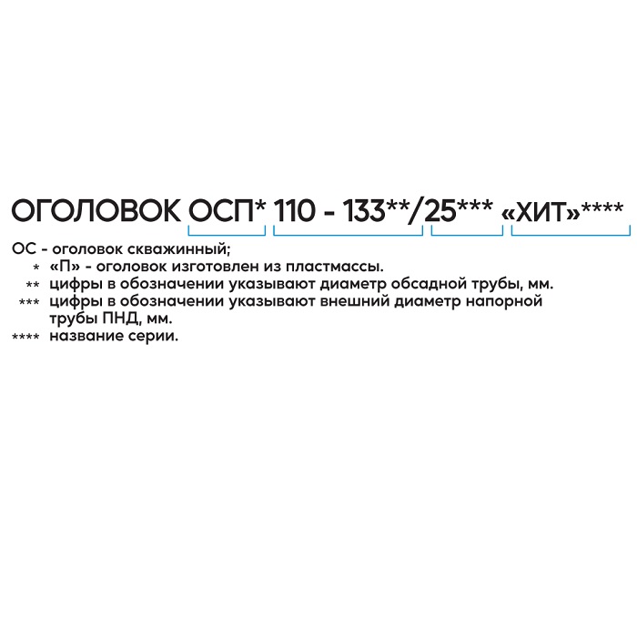 Оголовок скважинный предназначен для герметизации устья скважины с обсадной трубой наружным диаметром, в зависимости от модели, от 110 до 160 мм с установленным внутри нее насосом, полиэтиленовой напорной трубой диаметром 25 или 32 мм, а также питающим электрокабелем круглого сечения с наружным диаметром оболочки от 7 мм до 11 мм, с количеством проводников до 4-х, с сечением проводников до 2,5 мм2. Применение оголовка позволяет: