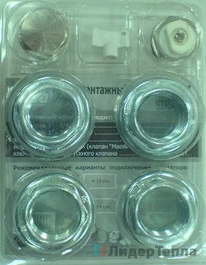 Набор включает переходники с прокладками, воздуховыпускной кран, заглушку, ключ для крана Маевского. Его можно привлекать для установки радиаторов из алюминия, биметалла. Благодаря полноценной комплектации при монтаже не требуется постоянно измерять окружность трубы, что экономит время, и существенно облегчает работу мастера. Монтажный комплект универсальный 3/4 создан из высокопрочного материала, поэтому его детали выдерживают значительные нагрузки давления, агрессивное влияние среды и образуют полностью герметичные, долговечные соединения.