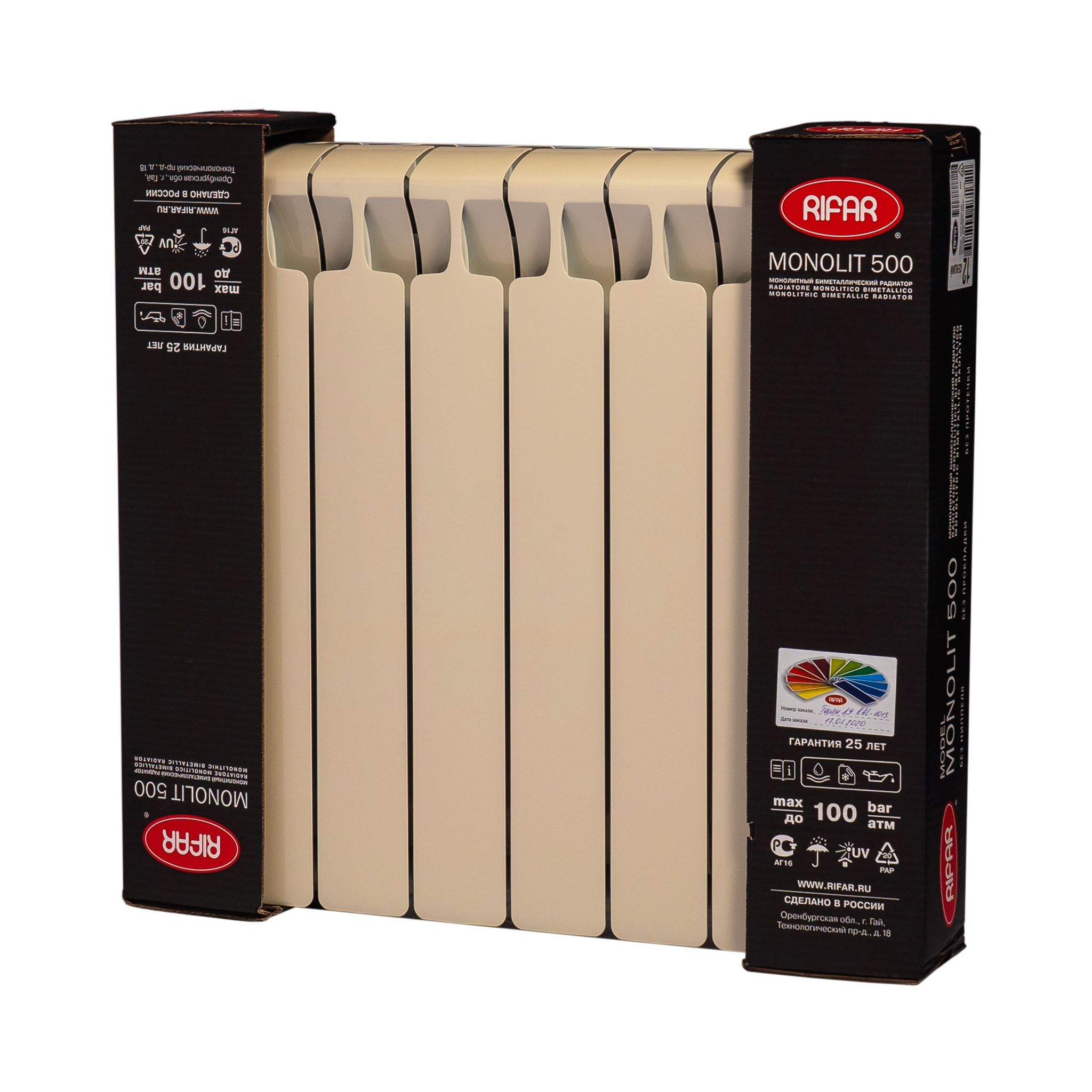 Биметаллический радиатор Rifar Monolit 500, 8 секций Айвори