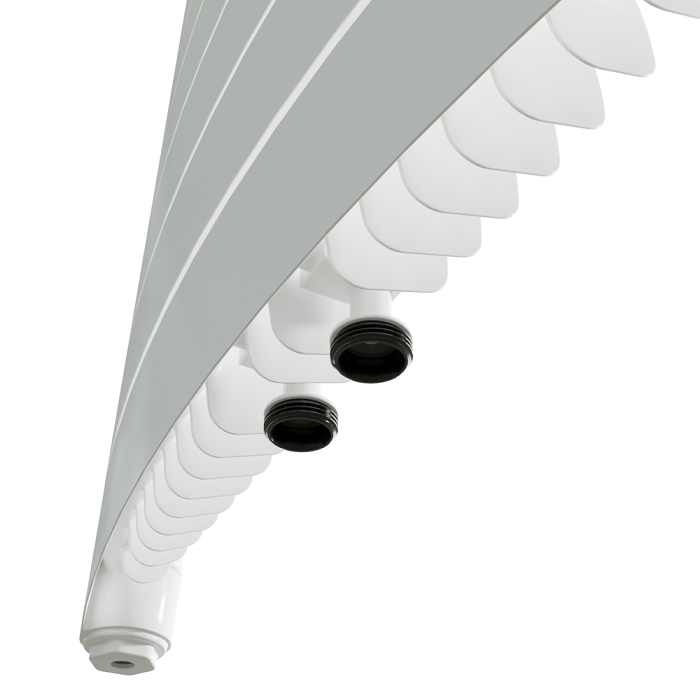 RIFAR CONVEX – это вертикальный биметаллический радиатор: внутренняя часть секции прибора изготовлена из стали марки CORREX, а наружная – из алюминиевого сплава. Секции соединены по особой технологии «гидрозамка», при которой используют уплотнительное кольцо из эластичного этиленпропиленового каучука (EPDM) и ниппель специальной конструкции собственного производства. Оригинальный профиль коллектора и строго цилиндрическая поверхность ниппеля в месте соединения секций позволяют обеспечить классическое гидравлическое уплотнение для высоких (более 150 атм) нагрузок, при этом каучуковое кольцо не имеет контакта с алюминиевым сплавом. Всё это делает прибор очень прочным: рабочее давление –30 атм, испытательное – 45 атм.