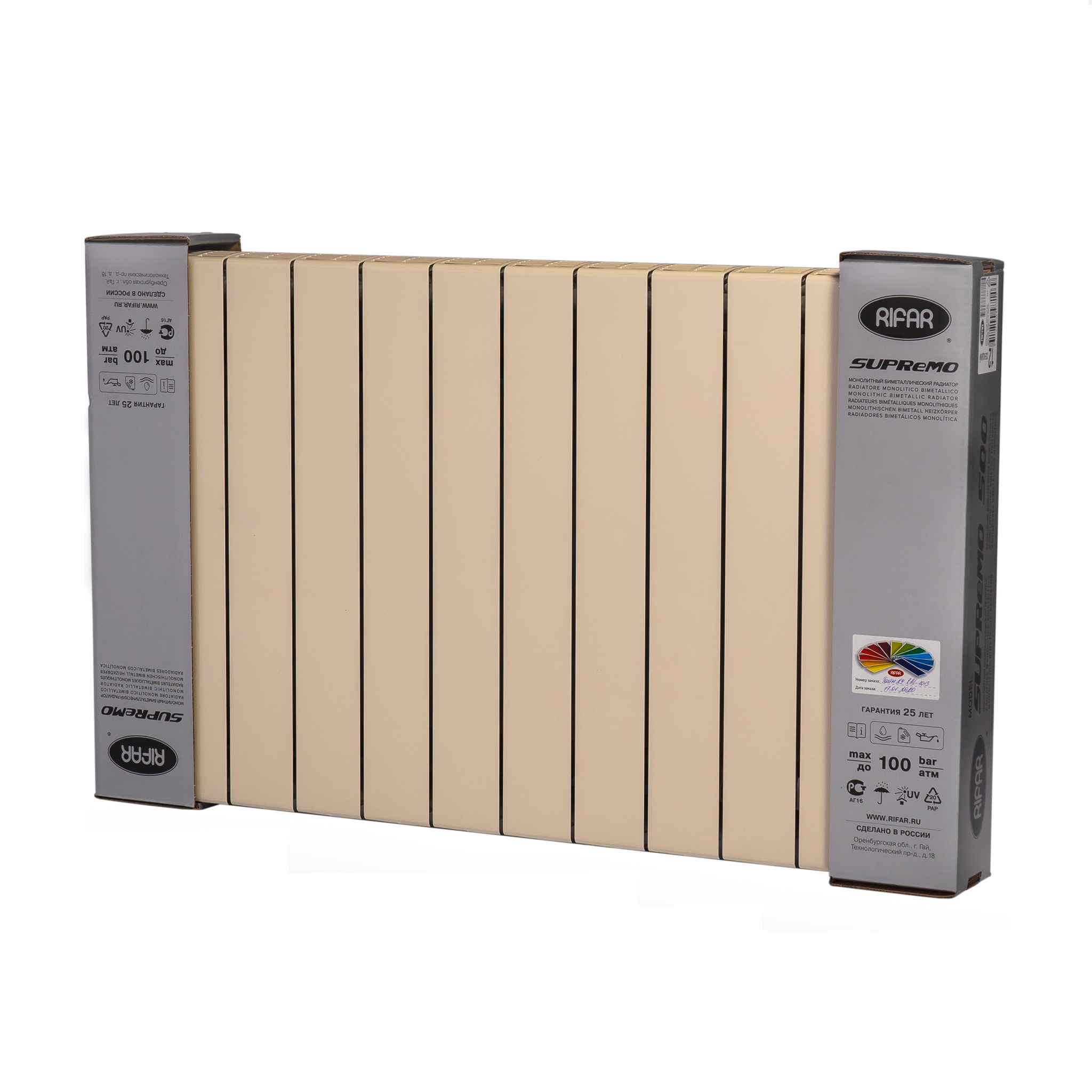 Rifar Supremo 500. Надежный, мощный и стильный радиатор. Тип радиатора - секционный. Конструкция - настенная. Материал - биметаллический. Подключение - боковое.
