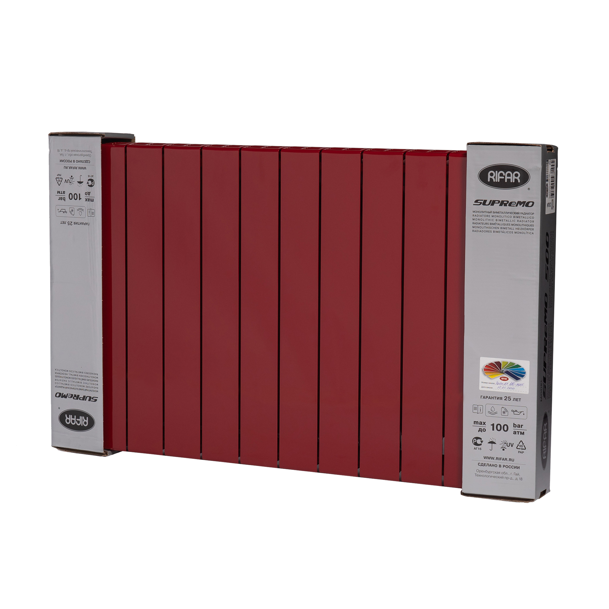 Rifar Supremo 500. Надежный, мощный и стильный радиатор. Тип радиатора - секционный. Конструкция - настенная. Материал - биметаллический. Подключение - боковое.