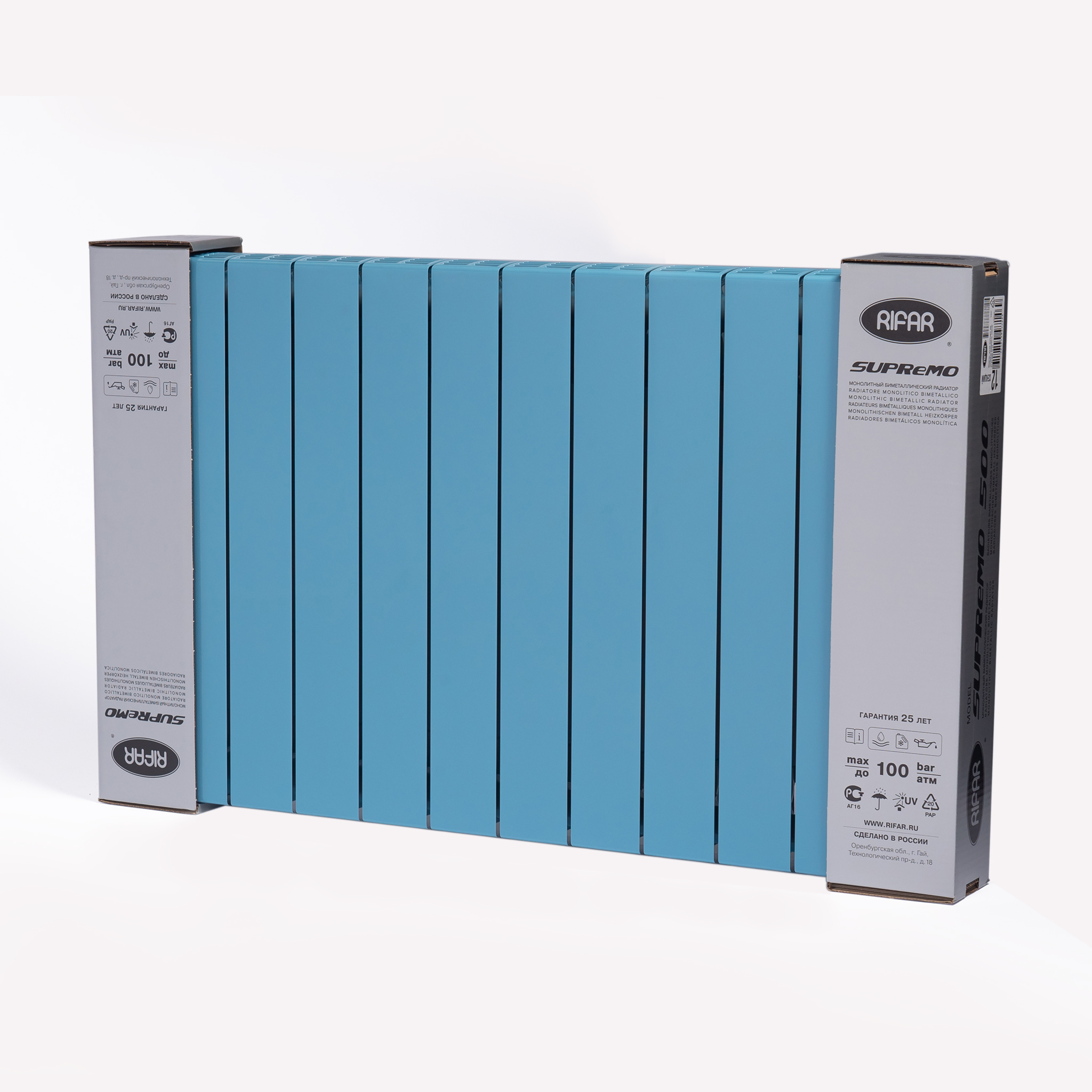 Компания Рифар предлагает Вашему вниманию линейку уникальных биметаллических радиаторов Supremo 500. Уникальность данных отопительных приборов заключается в их неповторимой конструкции. Радиатор Rifar Supremo 500 имеет не разборную монолитную структуру с толщиной стальных стенок как у водопроводных труб, что исключает вероятность протечек. Радиатор Супремо лишен потенциально опасных углов за счет скругления в конструкции и продуманных торцевых кейсов. Rifar Supremo 500. Надежный, мощный и стильный радиатор. Тип радиатора - секционный. Конструкция - настенная. Материал - биметаллический. Подключение - боковое.