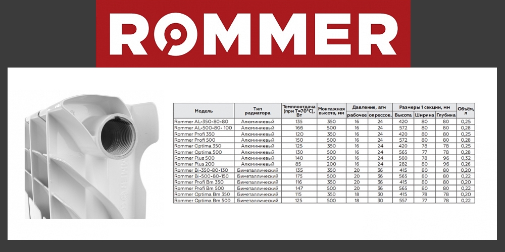 Биметаллический радиатор Rommer Profi Bm 500-1 Биметаллический радиатор Rommer (Роммер) Profi Bm 500. Rommer Profi Bm 500 – идеальное сочетание практичности и надежности. Адаптирован под частные и централизованные отопительные системы закрытого типа. Изделия отличают: травмобезопасный дизайн – отсутствуют острые углы и кромки; презентабельный внешний вид – идеально гладкая поверхность достигается трехступенчатым шлифованием.
