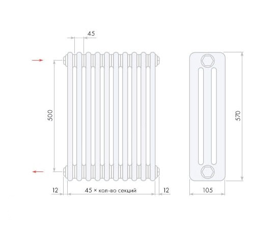 Радиатор Arbonia 3057 трехтрубный радиатор с боковым подключением труб