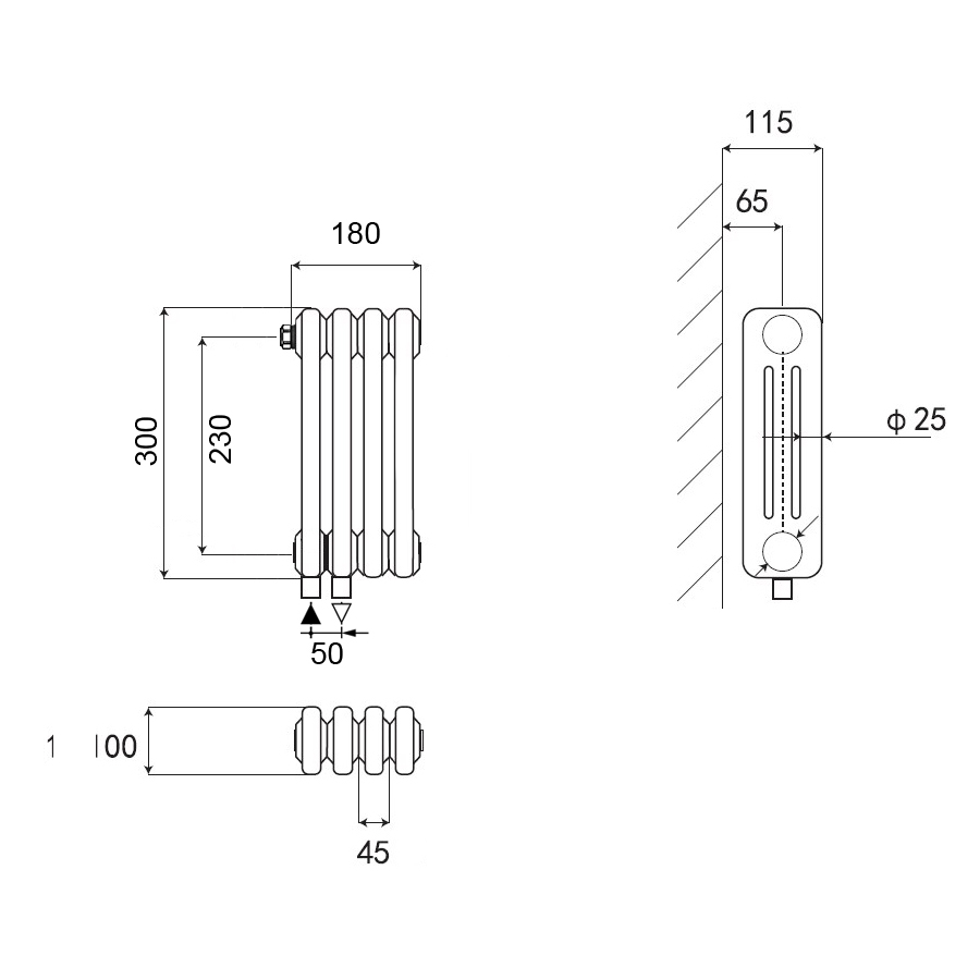 Стальной трубчатый радиатор Kohr Heim 3030/36 секций белый H01 с нижним подключением