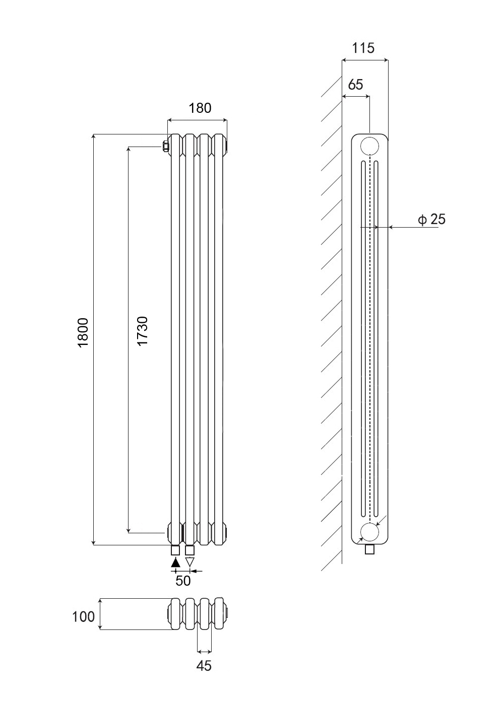Стальной трубчатый радиатор Kohr Heim 3180/05 секций белый H01 с нижним подключением