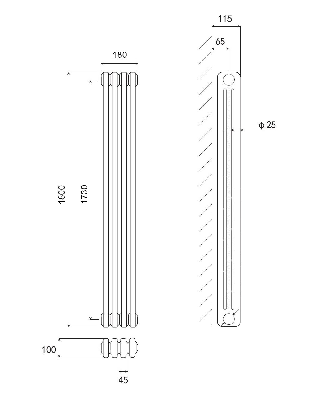 Стальной трубчатый радиатор Kohr Heim 3180/05 секций белый с боковым подключением 3/4