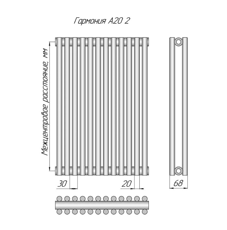 Радиатор КЗТО Гармония А20 2-1750-11 нп белый, нижнее подключение