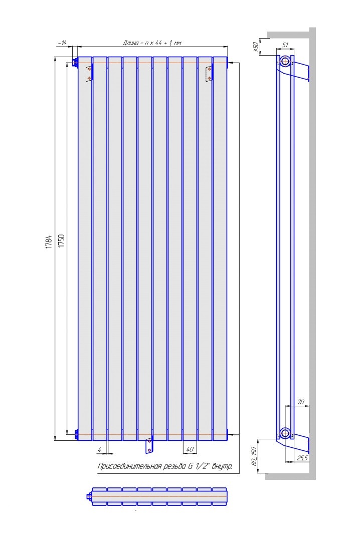 Радиатор КЗТО Соло В 2-1750-6 белый, боковое подключение