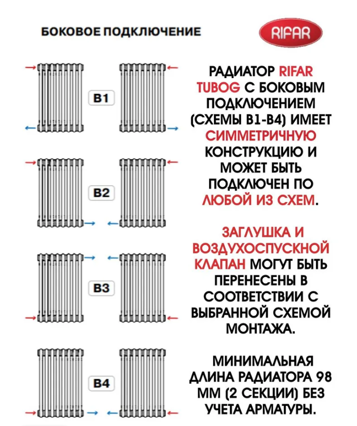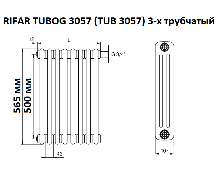 Трубчатый радиатор Rifar Tubog 3057 B1, 24 секции белый, боковое подключение