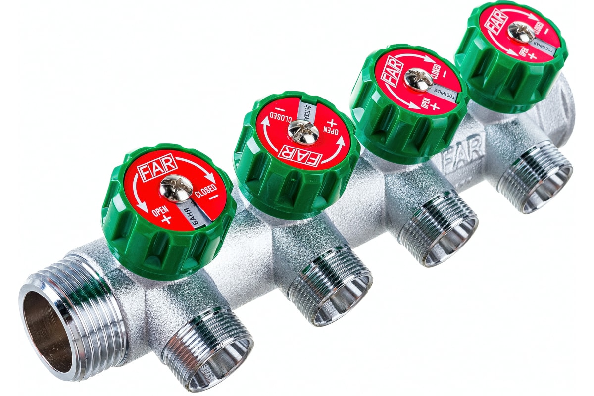 Коллектор FAR 1"х3/4" на 4 отвода, плоское уплотнение (ВР-НР) (FK 3824 134TP)