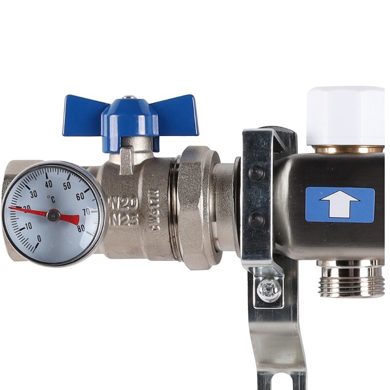 Терморегулирующие клапаны могут быть автоматизированы с помощью термоэлектрических сервоприводов. Для ограничения расхода теплоносителя на каждый отвод выполняется предварительная настройка пропускной способности.