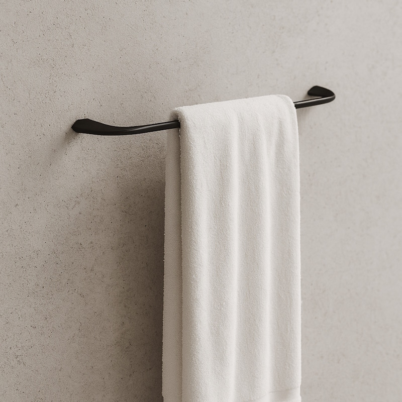 Элегантный держатель для полотенец в матовом черном цвете придаёт ванной стильный современный вид. Выполнен из ZAMAK + нержавеющей стали SUS-201 для долговечности и устойчивости к влаге. Матовая поверхность с антиследовым покрытием обеспечивает лёгкий уход.