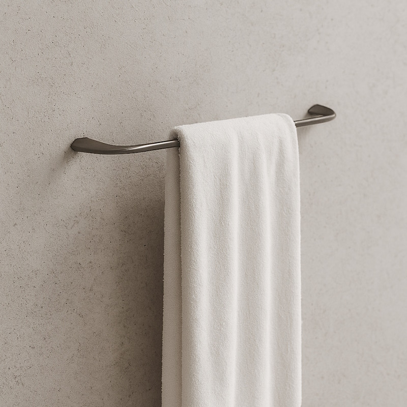 Держатель для полотенец в отделке «оружейная сталь» создаёт модный индустриальный акцент. Прочные материалы ZAMAK + SUS-201 гарантируют долговечность и защиту от влаги. Матовая поверхность с антиследовым покрытием сохраняет эстетичный вид изделия.