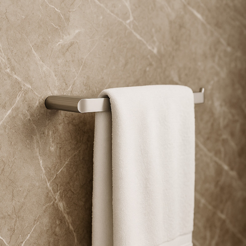 Элегантный держатель для полотенец превращает обычную ванную в современное пространство. Глянцевое антиследовое покрытие сохраняет блеск даже при ежедневном использовании, а прочный сплав ZAMAK гарантирует надежность. Держатель удобно крепится к стене с помощью комплектного монтажа и выдерживает нагрузку до 5 килограммов — практичность без компромиссов.