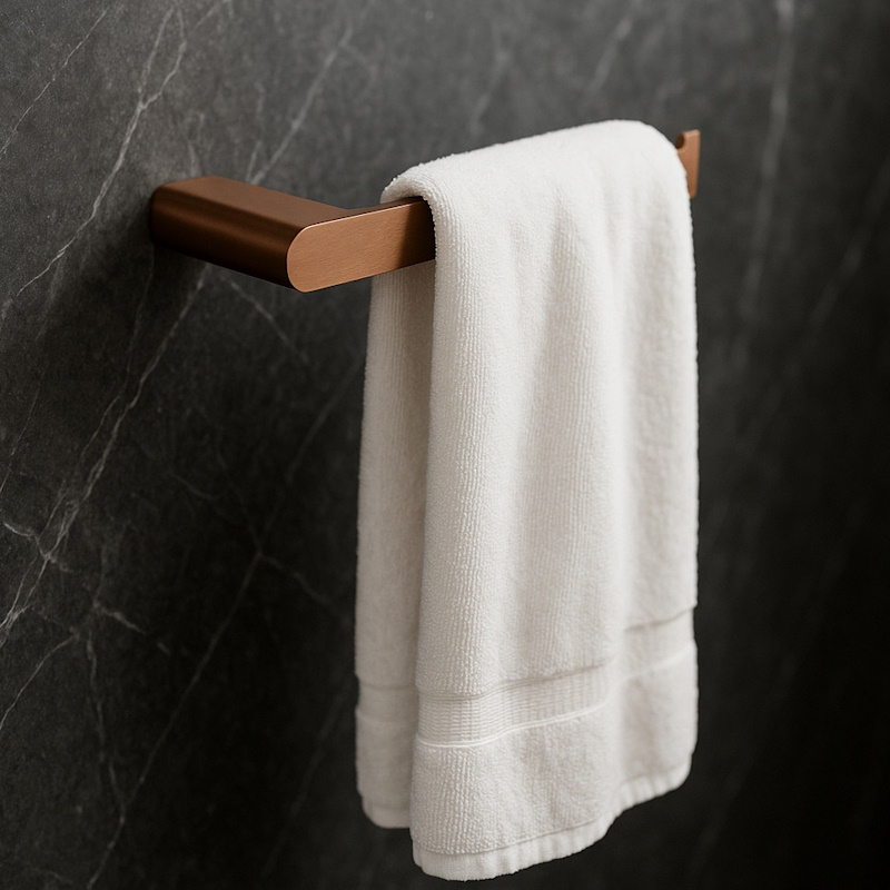 Теплый бронзовый оттенок придает ванной уют и элегантность. Прочный держатель с антиследовым покрытием и простой монтаж обеспечивает надежное использование каждый день.