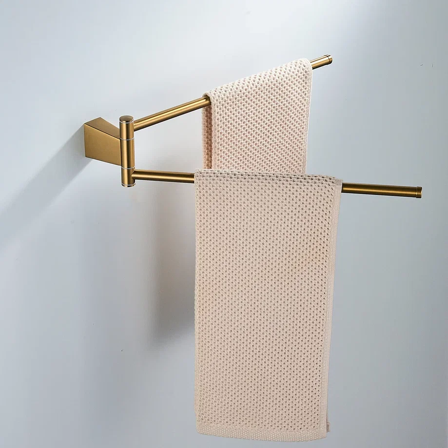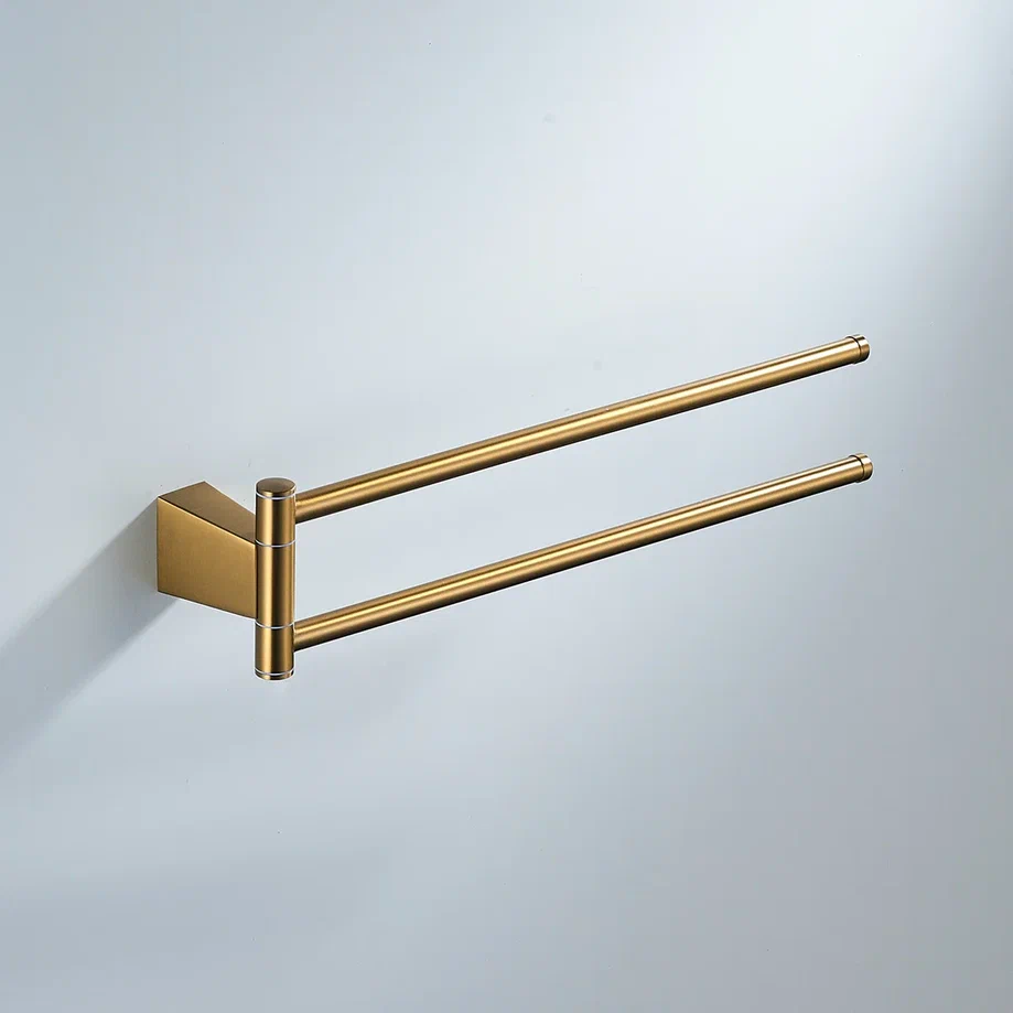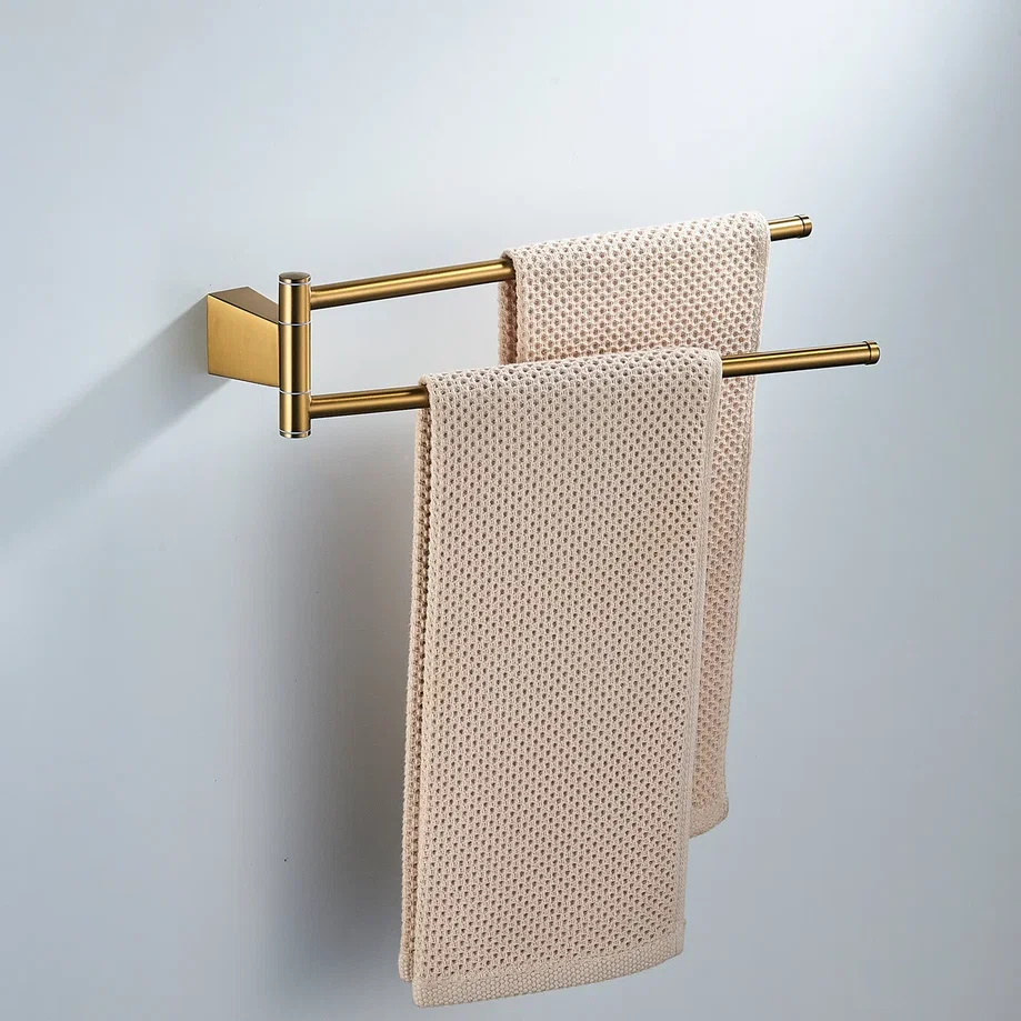 Держатель для полотенец Shevanik SG5707G в современном цвете "золотой сатин" (брашированное золото) — это стильное и функциональное решение для вашей ванной комнаты или кухни. Конструкция в виде двух поворотных перекладин обеспечивает удобство использования и позволяет эффективно разместить несколько полотенец, экономя пространство. Изготовленный из прочной нержавеющей стали, держатель гарантирует долговечность и устойчивость к влаге, что особенно важно для помещений с повышенной влажностью. Современный минималистичный дизайн делает его универсальным элементом интерьера, который гармонично впишется в любой стиль. Настенный монтаж обеспечивает простоту установки, а комплект, включающий как саморезы, так и дюбели, позволяет выбрать оптимальный способ крепления в зависимости от типа стены. Держатель Shevanik не только удобен в использовании, но и служит элегантным дополнением к общему дизайну помещения, подчёркивая ваш безупречный вкус.