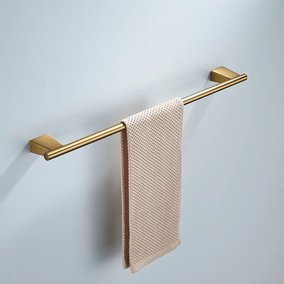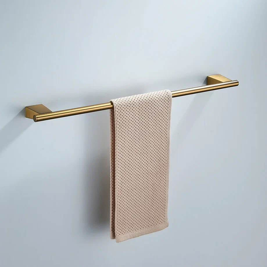 Держатель для полотенец Shevanik SG5717G в современном цвете "золотой сатин" (брашированное золото) — это элегантное и практичное решение для вашей ванной комнаты или кухни. Конструкция в виде перекладины обеспечивает удобство использования и позволяет эффективно разместить несколько полотенец, сохраняя порядок и чистоту в помещении. Изготовленный из прочной нержавеющей стали, держатель гарантирует долговечность и устойчивость к влаге, что делает его идеальным выбором для помещений с повышенной влажностью. Современный минималистичный дизайн делает этот аксессуар универсальным элементом интерьера, который гармонично впишется в любой стиль — от классического до современного. Настенный монтаж обеспечивает простоту установки, а комплект, включающий как саморезы, так и дюбели, позволяет выбрать оптимальный способ крепления в зависимости от типа стены. Держатель Shevanik не только удобен в использовании, но и служит стильным дополнением к общему дизайну помещения, подчёркивая ваш безупречный вкус.