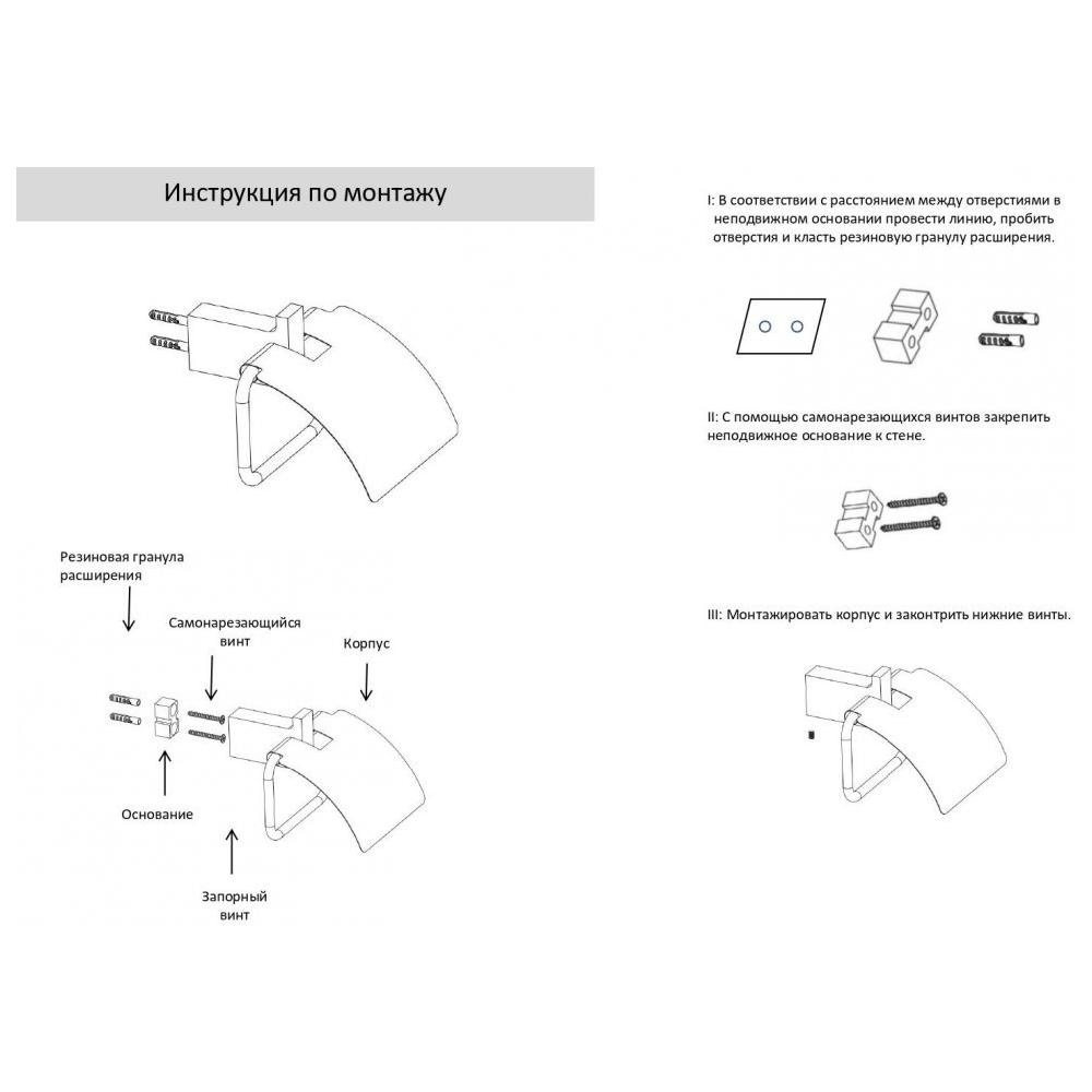 КомплектацияДержатель для туалетной бумаги, крепления