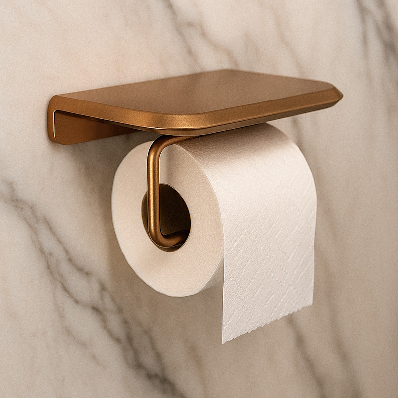 Держатель в роскошном оттенке бронзы — комфорт и стиль в одной детали. Полочка для телефона, антиследовое покрытие, монтаж за минуты, долговечный аксессуар для вашей ванной.