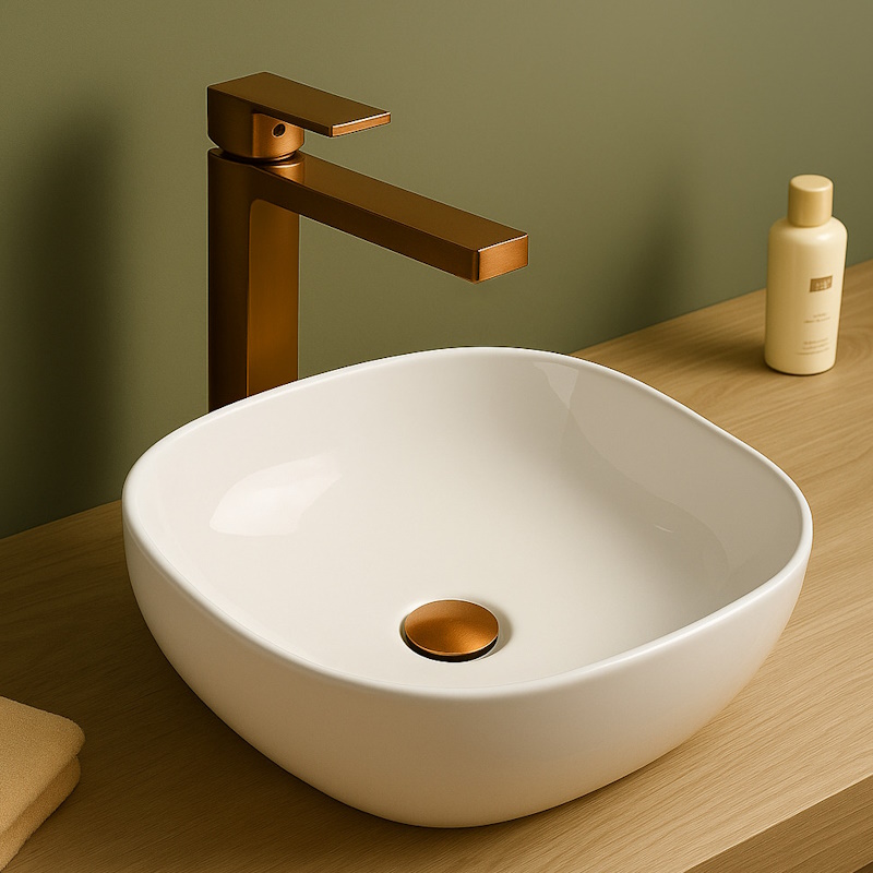 Донный клапан нажимной без перелива в бронзовом оттенке. Плавный ход кнопки CLICK-CLACK, долговечность и защита от разводов и отпечатков. Для стильных и практичных ванных комнат.