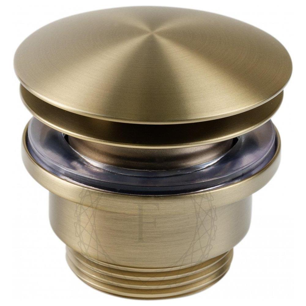Донный клапан для раковины FILARETE FL75BR, бронза. Нажимной донный клапан FILARETE – это надежная сливная арматура и изысканный штрих в интерьере идеальной ванной комнаты. В быту клапан не только сдержит проникновение неприятных запахов из канализации, но и превратит обычную раковину в многофункциональный атрибут: от своеобразной емкости для стирки мелких вещей до уходовых ванночек, тем самым выполняя бесценную водосберегающую функцию.