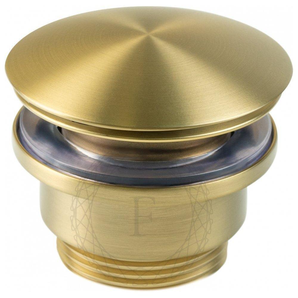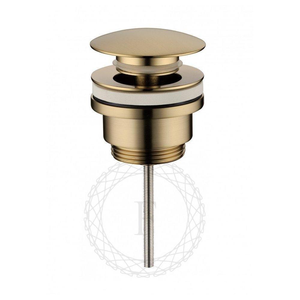 Донный клапан для раковины FILARETE FL75MG, матовое золото. Нажимной донный клапан FILARETE – это надежная сливная арматура и изысканный штрих в интерьере идеальной ванной комнаты. В быту клапан не только сдержит проникновение неприятных запахов из канализации, но и превратит обычную раковину в многофункциональный атрибут: от своеобразной емкости для стирки мелких вещей до уходовых ванночек, тем самым выполняя бесценную водосберегающую функцию.