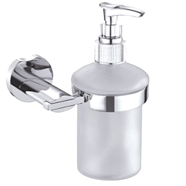 Дозатор для мыла с оригинальным дизайном. Держатель изготовлен из латуни, материал дозатора - стекло.
