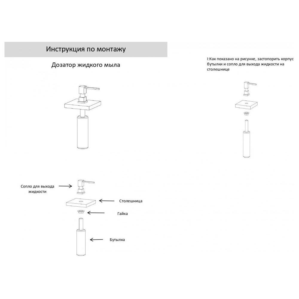 Комплектация емкость 500 мл, помпа поворотная, монтажная гайка