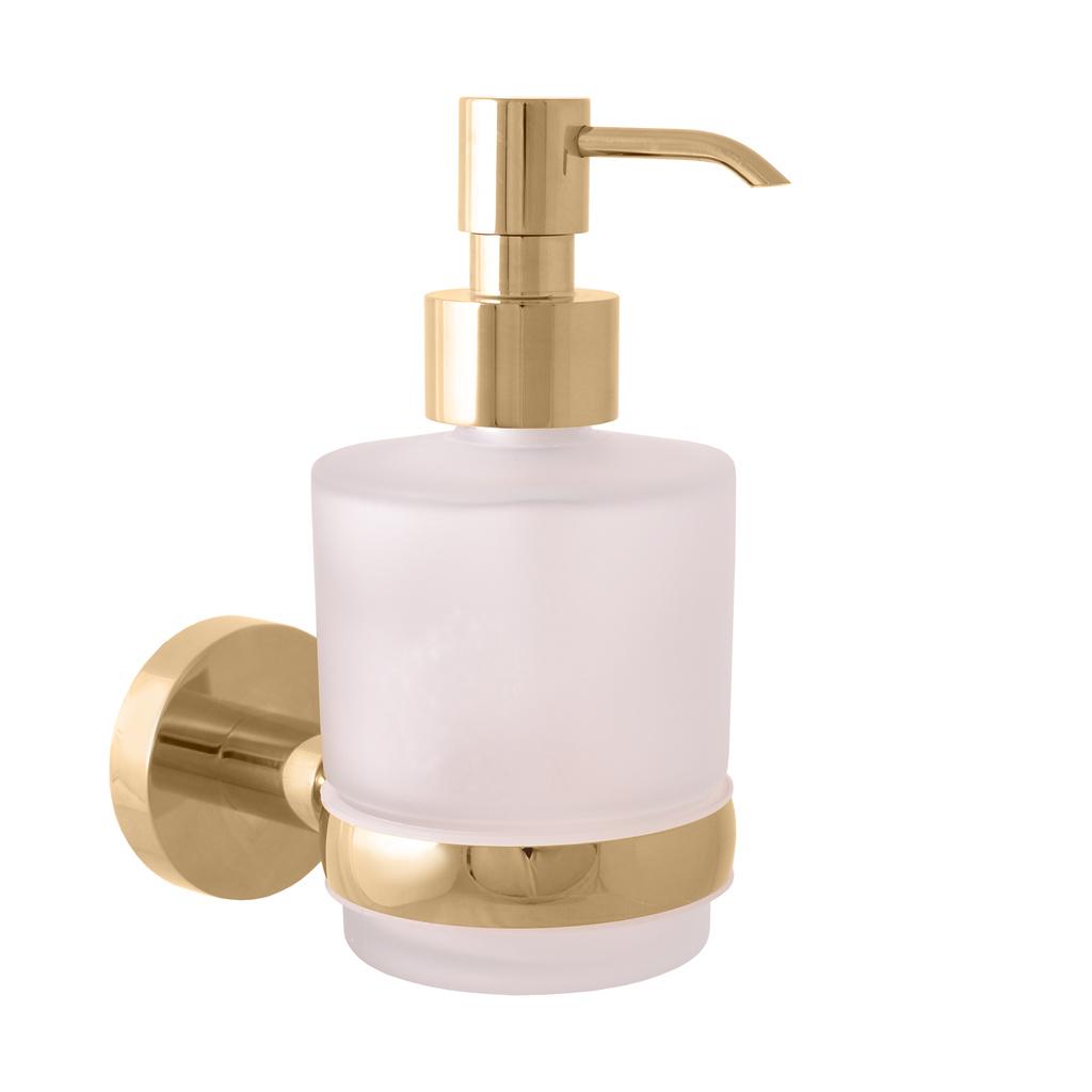Дозатор для жидкого мыла стеклянный, ЦВЕТ ЗОЛОТО, арт. COA0303Z. Стильный предмет интерьера, предназначенный для ванной комнаты. Устанавливается на стену. Материал, применяемый для производства аксессуара - латунь/стекло. Практичная и в то же время продуманная вещь, выполненная в стиле модерн. Кроме аксессуаров в коллекции COLORADO присутствуют смесители для раковины, ванны, душа, кухни. Это позволит оформить ванную комнату в едином стиле!