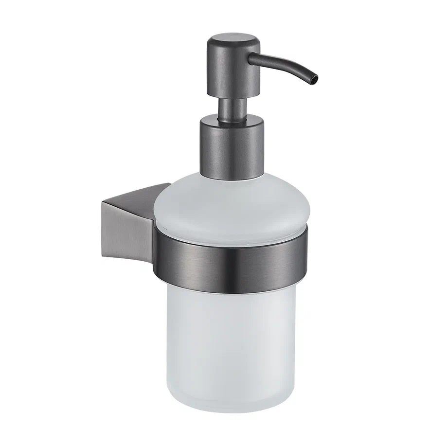 Дозатор для жидкого мыла Shevanik SG5744T в современном цвете "оружейная сталь" — это стильное и функциональное решение для вашей ванной комнаты. Элегантная конструкция сочетает в себе прочный держатель из нержавеющей стали и изящный дозатор из матового стекла, что придаёт изделию современный и изысканный вид. Объём дозатора составляет 200 мл, что обеспечивает достаточное количество мыла для повседневного использования, при этом не занимая много места. Современный минималистичный дизайн делает этот аксессуар универсальным элементом интерьера, который гармонично впишется в любой стиль. Настенный монтаж обеспечивает простоту установки, а комплект, включающий как саморезы, так и дюбели, позволяет выбрать оптимальный способ крепления в зависимости от типа стены. Дозатор Shevanik не только практичен в использовании, но и служит стильным акцентом в оформлении помещения, подчёркивая ваш безупречный вкус.