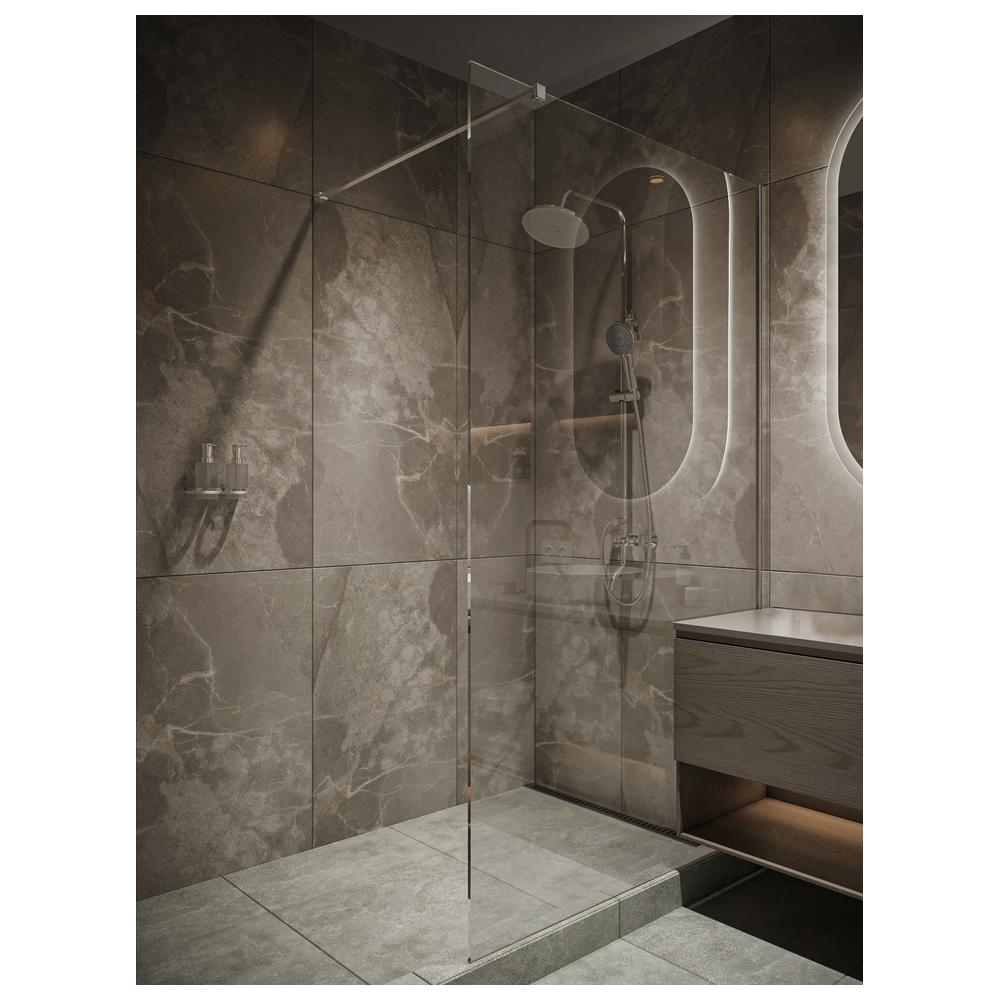 Максимум пространства и света в вашей ванной. Walk-In длиной 120 см оснащен прозрачным стеклом 8 мм и надёжным хромированным профилем. Одностороннее покрытие Smart Clean облегчает уход, а современный дизайн подчёркивает стиль вашей ванной.