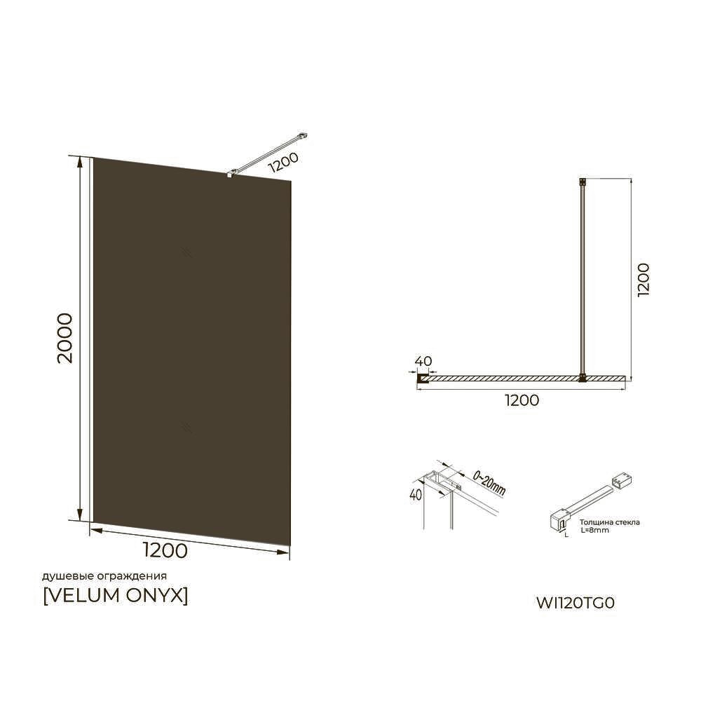 Душевая перегородка Knotlor WI120TG0RB 120х200, бронза.