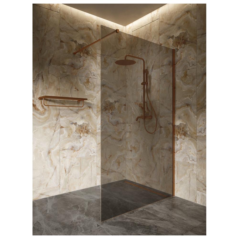 Прекрасное сочетание стиля и функциональности. Душевое ограждение Walk-In с бронзовой рамкой и тонированным стеклом создаёт атмосферу уюта и приватности. Легкий уход благодаря Smart Clean, надежный алюминиевый профиль, современный дизайн.