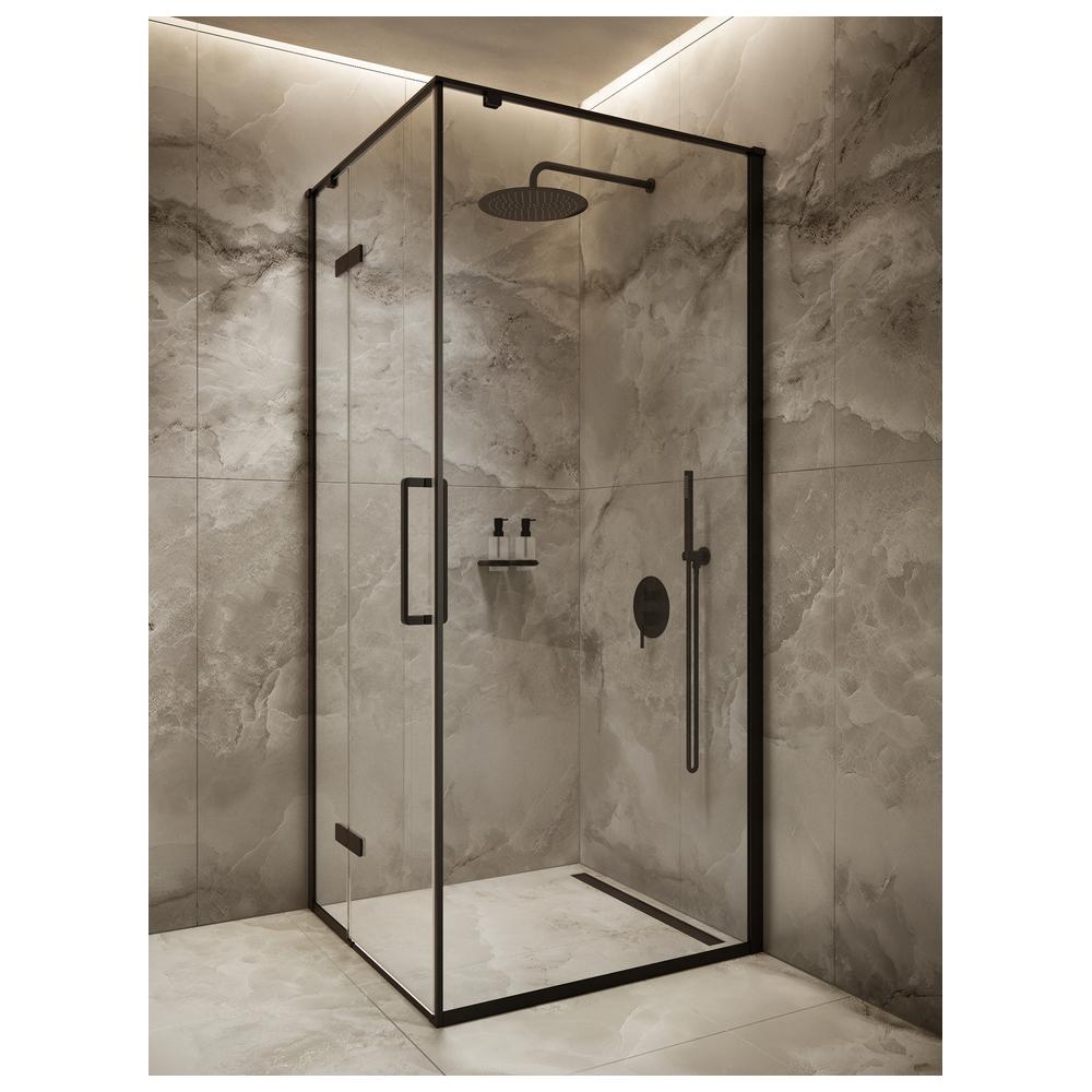 Стильная боковая панель шириной 90 см с матовым черным профилем и прозрачным стеклом 8 мм превращает душевую нишу в полноценный душевой уголок. Идеальное решение для современных ванных комнат.