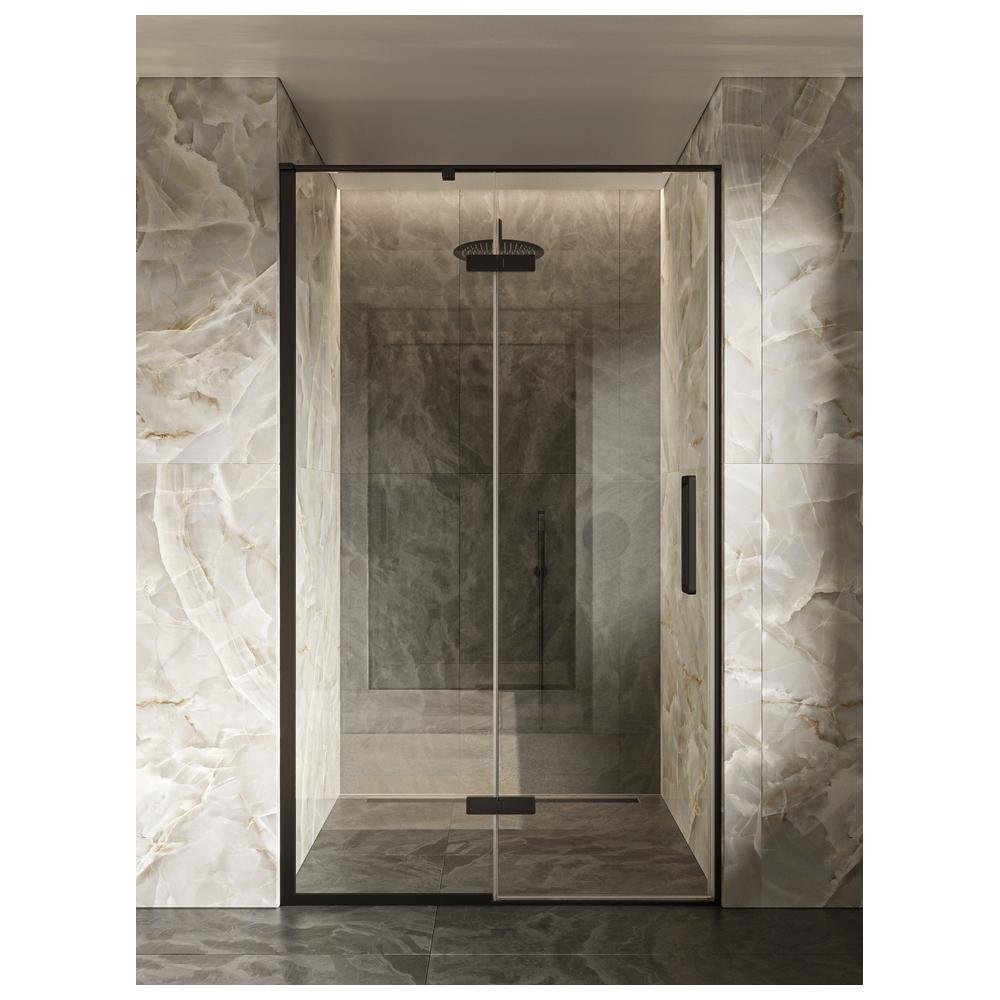Просторная дверь для ниш шириной 120 см с черным матовым профилем и прозрачным стеклом 8 мм. Создаёт ощущение легкости и современности в ванной комнате. Покрытие Smart Clean для легкого ухода. Прочный матовый алюминиевый профиль. Полный комплект для установки.